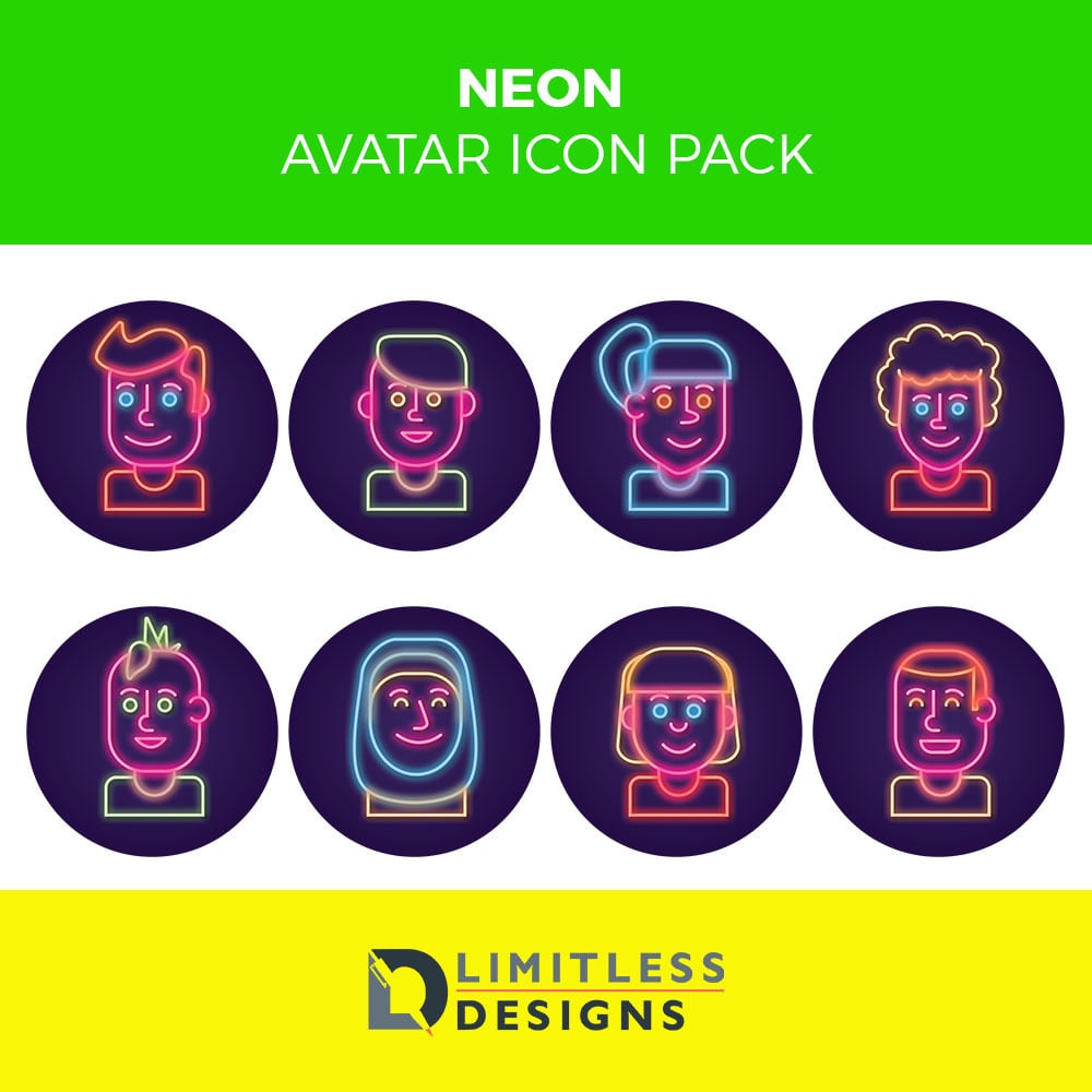 This pack of illustrations includes 8 neon avatars in PNG and SVG. They are free for commercial and non-commercial use.